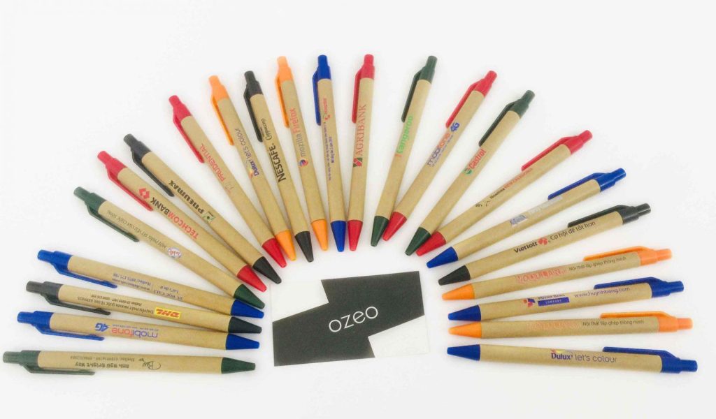 Nếu bạn đang tìm kiếm một nhà cung cấp bút giấy Kraft có thể đáp ứng tất cả các yêu cầu thiết kế quảng cáo của bạn với giá thành rẻ nhất, hãy liên hệ với OZEO. Chúng tôi có hàng trăm mẫu bút bi quảng cáo được thiết kế sẵn, phù hợp với nhu cầu đa dạng của khách hàng.