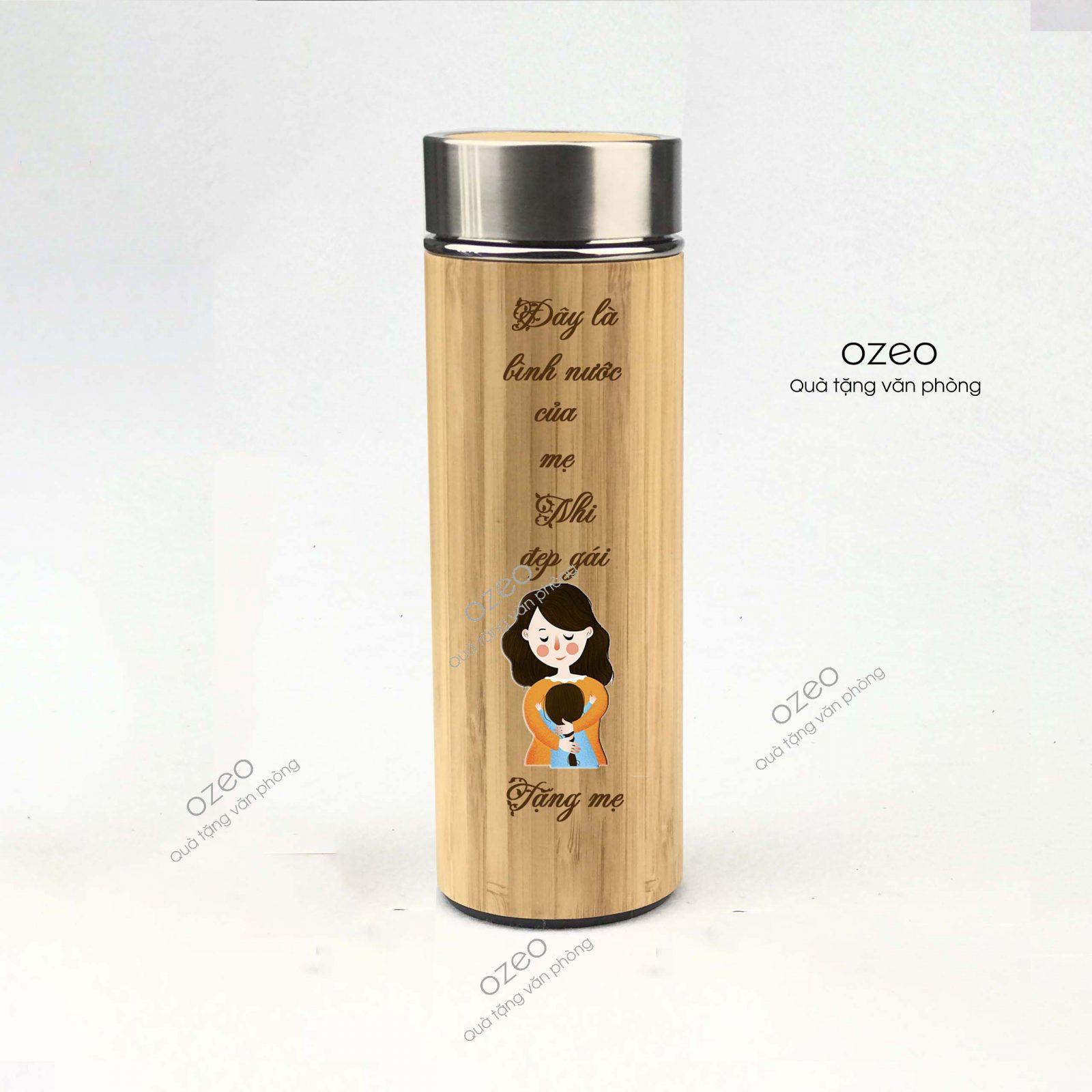Bình Giữ Nhiệt Vỏ Tre In Hình Quà Tặng Mẹ