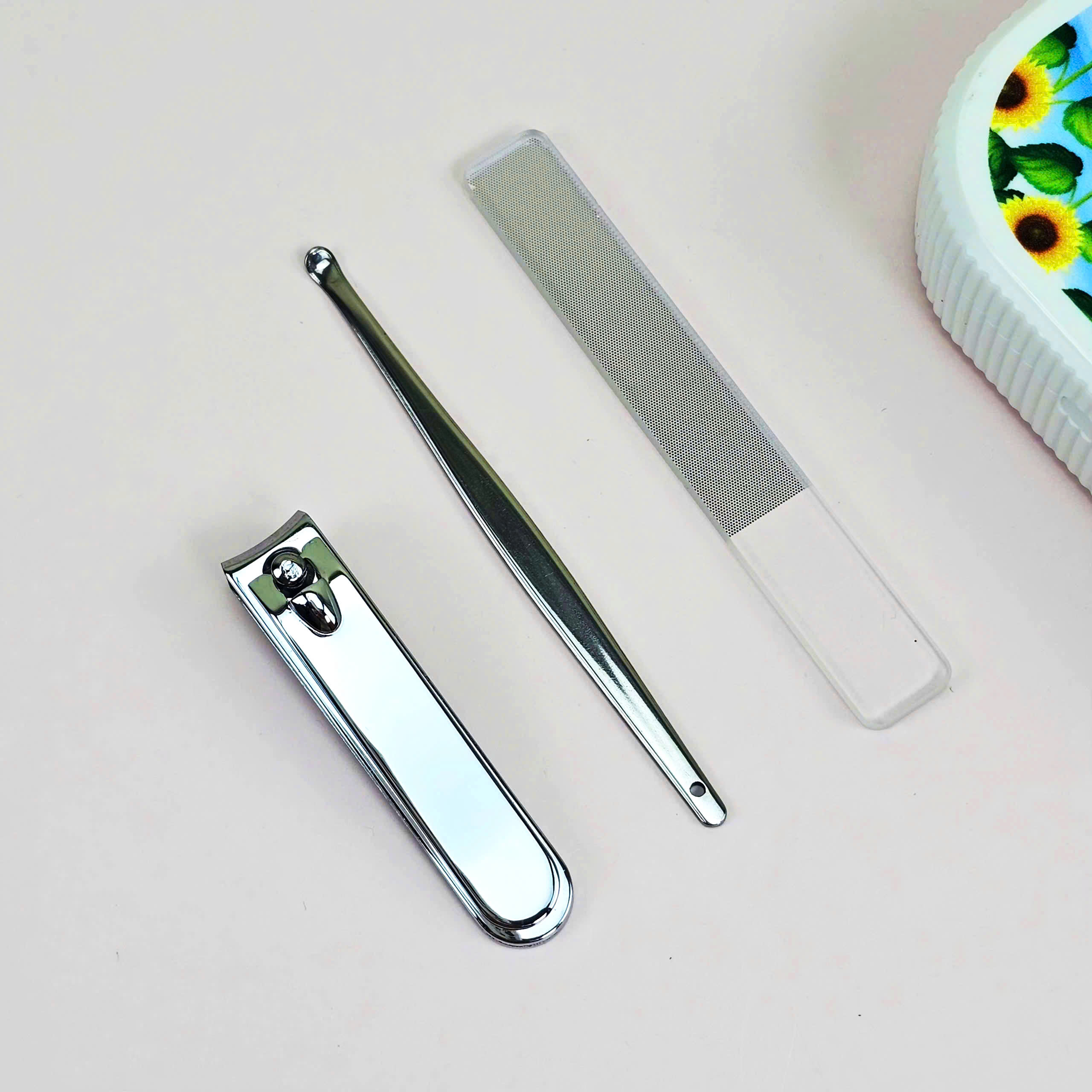 - Dụng cụ chăm sóc móng bằng thép không gỉ: bấm móng, dũa, lấy rấy tai… bền bỉ, dễ vệ sinh