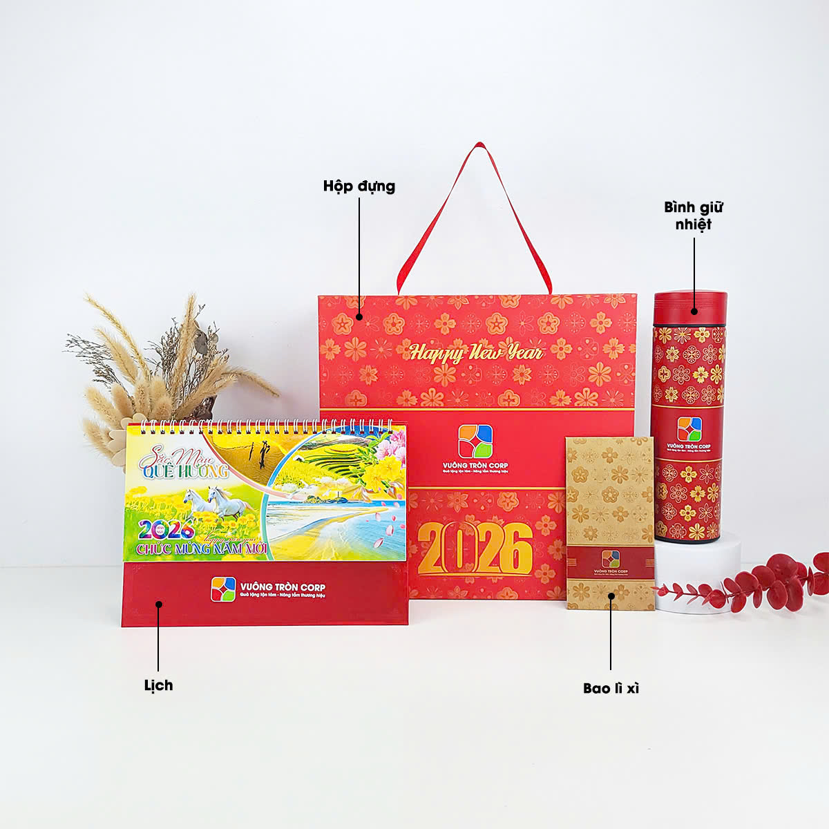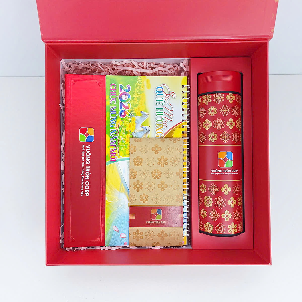 Bộ quà tặng cuối năm được thiết kế dành riêng cho doanh nghiệp muốn tri ân nhân viên bằng món quà đẹp – thiết thực – mang đậm dấu ấn thương hiệu. Mỗi set đều đi kèm dịch vụ in logo theo yêu cầu, giúp truyền tải thông điệp cảm ơn và tinh thần gắn kết trong dịp tổng kết cuối năm.