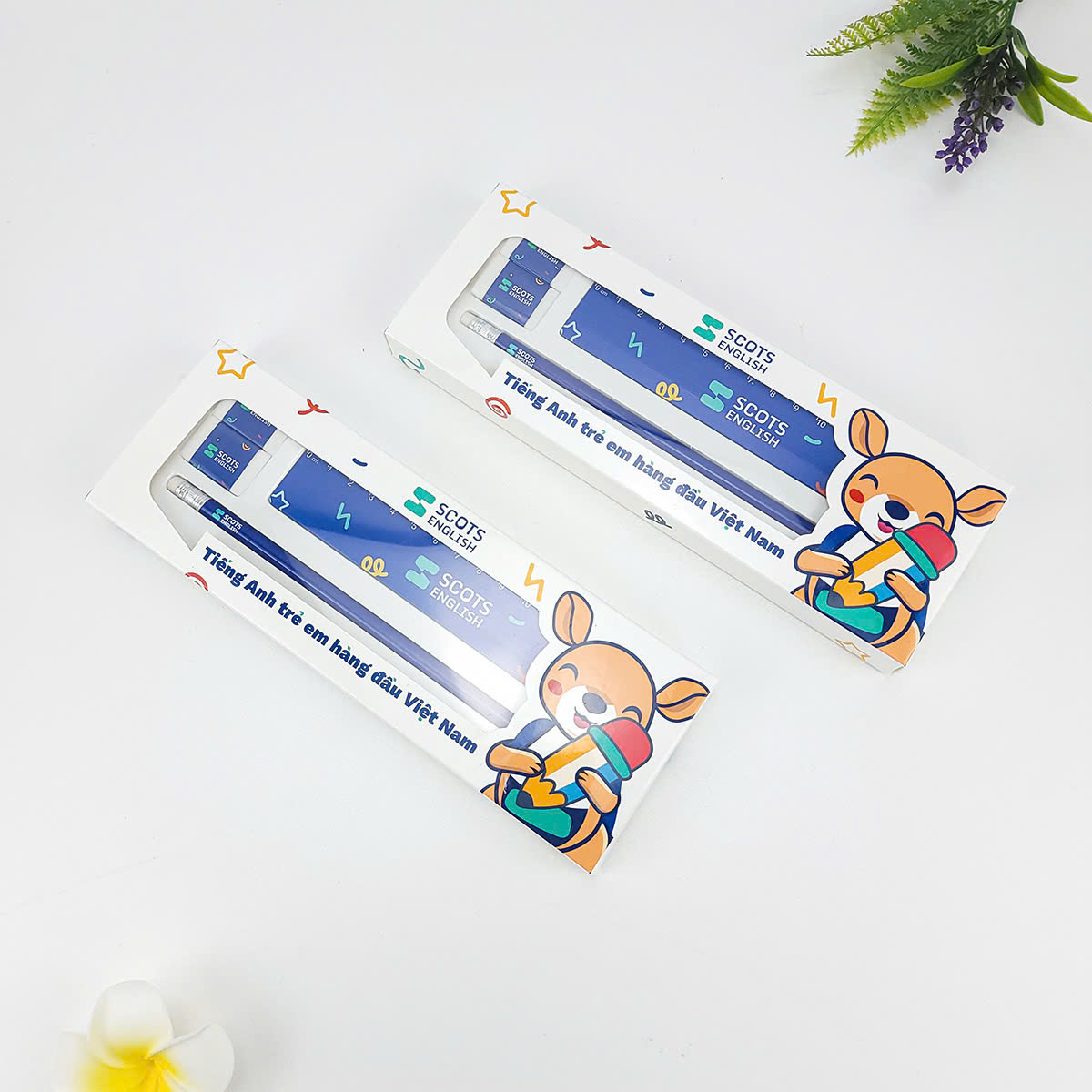 - Đóng gói trong hộp mềm với hình ảnh ngộ nghĩnh, kèm thông điệp “Tiếng Anh trẻ em hàng đầu Việt Nam”.