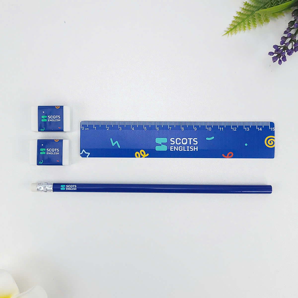 - 1 thước kẻ nhựa 15cm in full logo cùng hoạ tiết