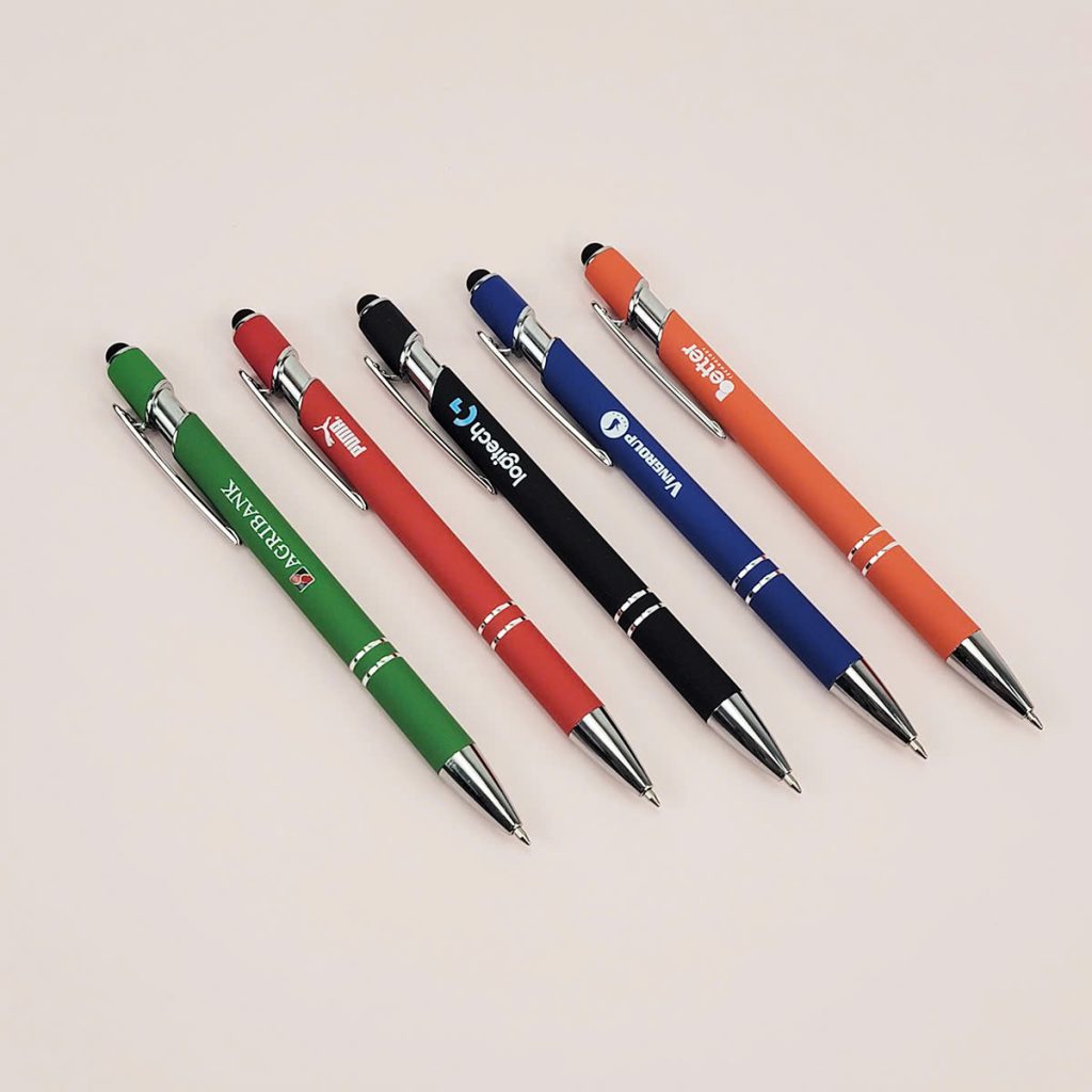 Tìm kiếm quà tặng sự kiện độc đáo? Chọn ngay Bút bi cảm ứng AL9332. Với cấu tạo thân kim loại và đầu chạm stylus hiện đại, sản phẩm không chỉ là bút viết mà còn là phụ kiện công nghệ tiện dụng, dễ dàng in ấn logo nổi bật.