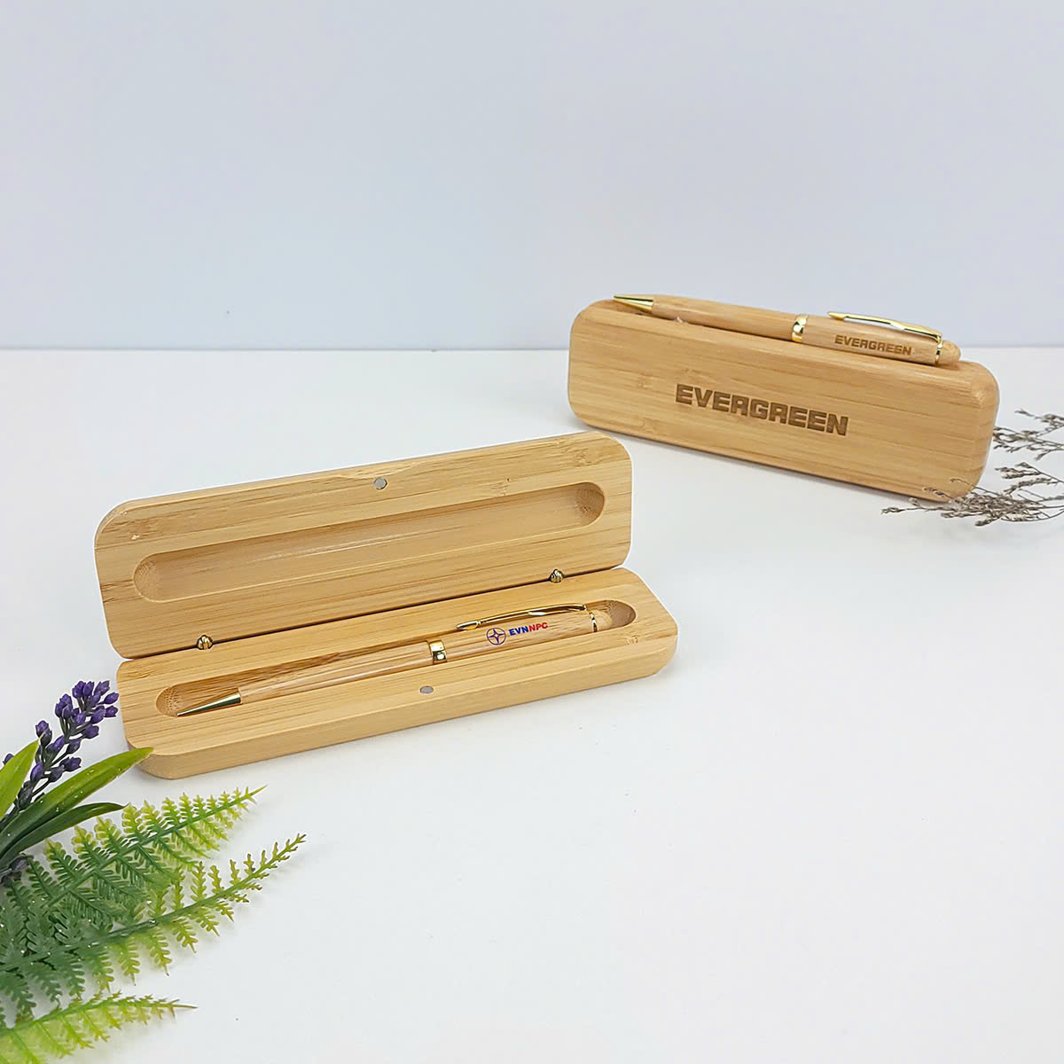 Set Hộp & Bút Tre In Logo Quà Tặng Xanh Cho Doanh Nghiệp