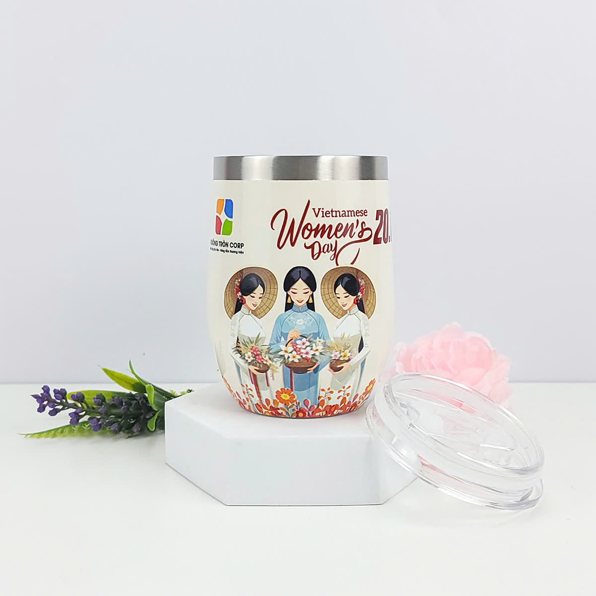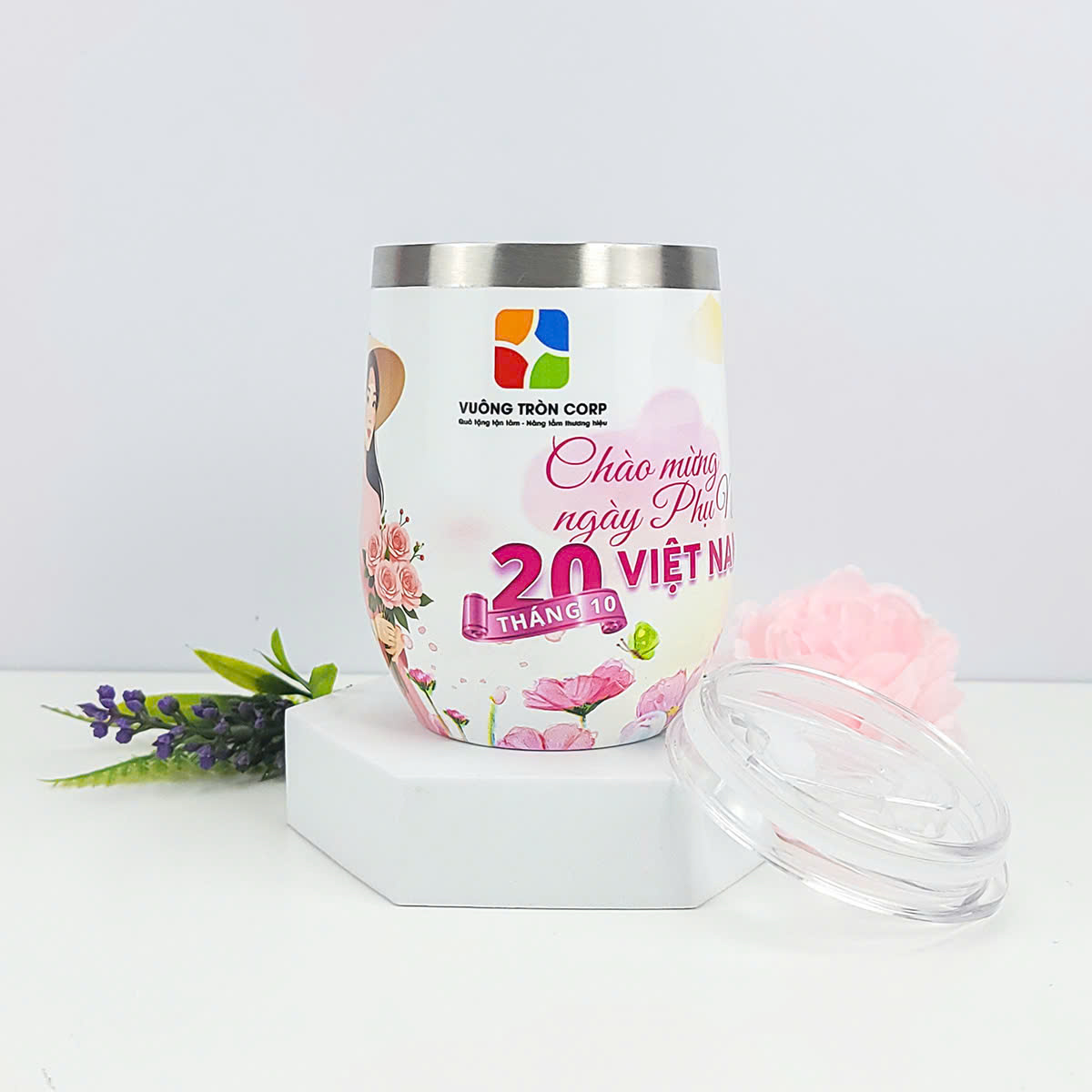 - Ly giữ nhiệt chất liệu inox 304, giữ nóng/lạnh 6–8 tiếng: in logo, hình ảnh cùng thông điệp 20/10