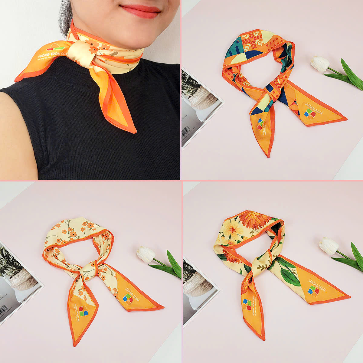 - 01 Khăn lụa latin in logo 1 vị trí trên khăn