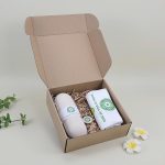 - Hộp giấy kraft thân thiện môi trường + giấy rối đóng gói gọn gàng in theo yêu cầu