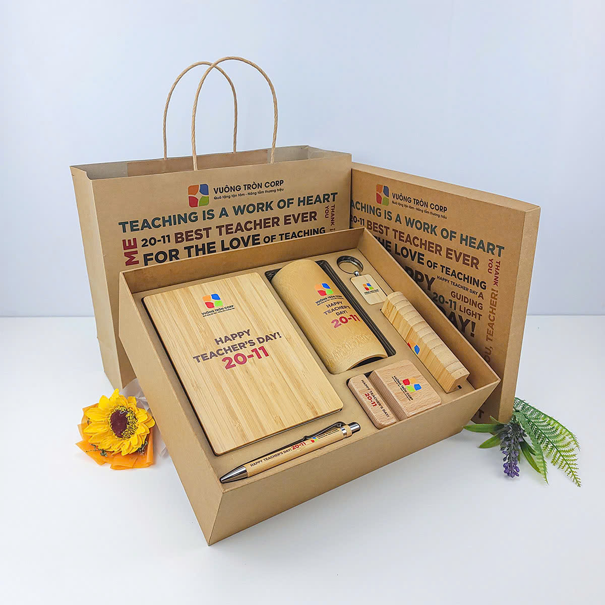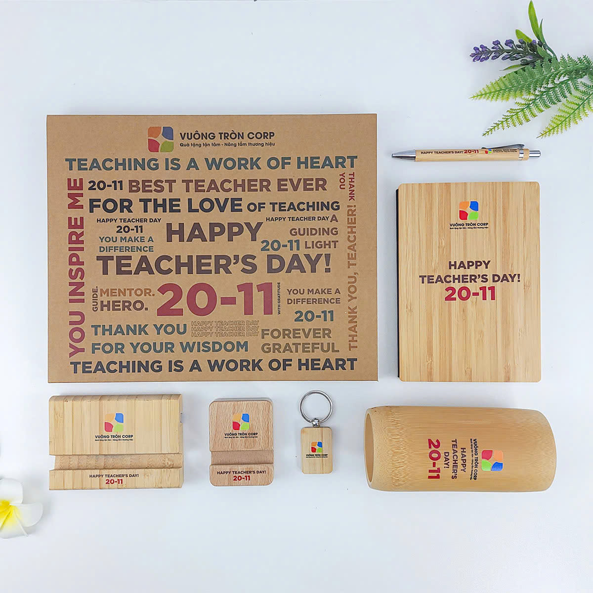 Tri Ân Thầy Cô 20/11 Bằng Bộ Quà Tặng Tre In Logo – ECO1-A