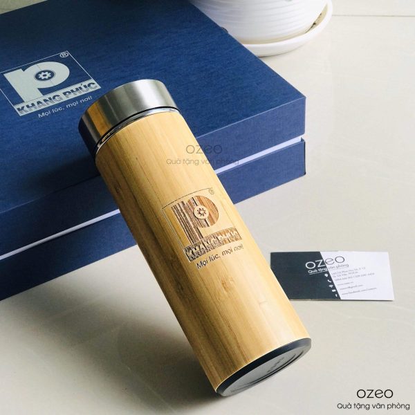 3. Bình giữ nhiệt tre khắc laser/in logo hình ảnh theo yêu cầu.